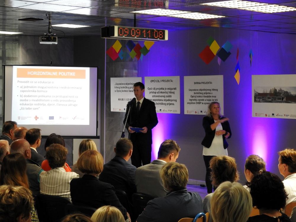 - U drugoj fazi u planu je izgradnja zgrade centralnog operacijskog bloka s jedinicom intenzivnog liječenja, centralne sterilizacije, transfuzije i RTG-a, koji će spojnim hodnicima biti povezani s okolnim bolničkim zgradama. Projekt je vrijedan minimalno 300 milijuna kuna, a načelno postoji suglasnost Vlade da u sljedećem budžetu Europske unije omogući izgradnju bolnica – naveo je župan Čačić. Na uvodnoj konferenciji prisustvovao je i pomoćnik ministra zdravstva Gordan Žanić. - Lijepo je danas biti u ovoj županiji drugi put u svega tjedan dana, što je pokazatelj kvalitetnog rada – istaknuo je. Pozdrave su uputili i Jelena Spajić iz Ministarstva regionalnog razvoja i fondova Europske unije, kao i Mislav Sovulj, pomoćnik ravnatelja SAFU-a.