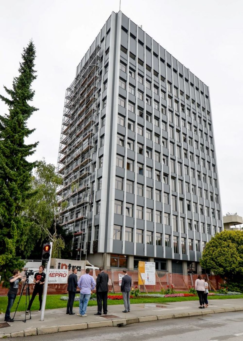 Čak 95 posto radova je već gotovo, izvijestio je čelnike Varaždinske županije koji su jučer obišli gradilište, voditelj gradilišta iz tvrtke Mepro Igor Horvat. Do sredine srpnja bit će uklonjene sve skele, a postavit ćemo podiznu platformu kojom će se osobama s invaliditetom osigurati pristupačnost prizemlju i dizalima. Kad skinemo skele, slijedi završni sloj fasade u prizemlju te čišćenje gradilišta – naveo je Horvat.