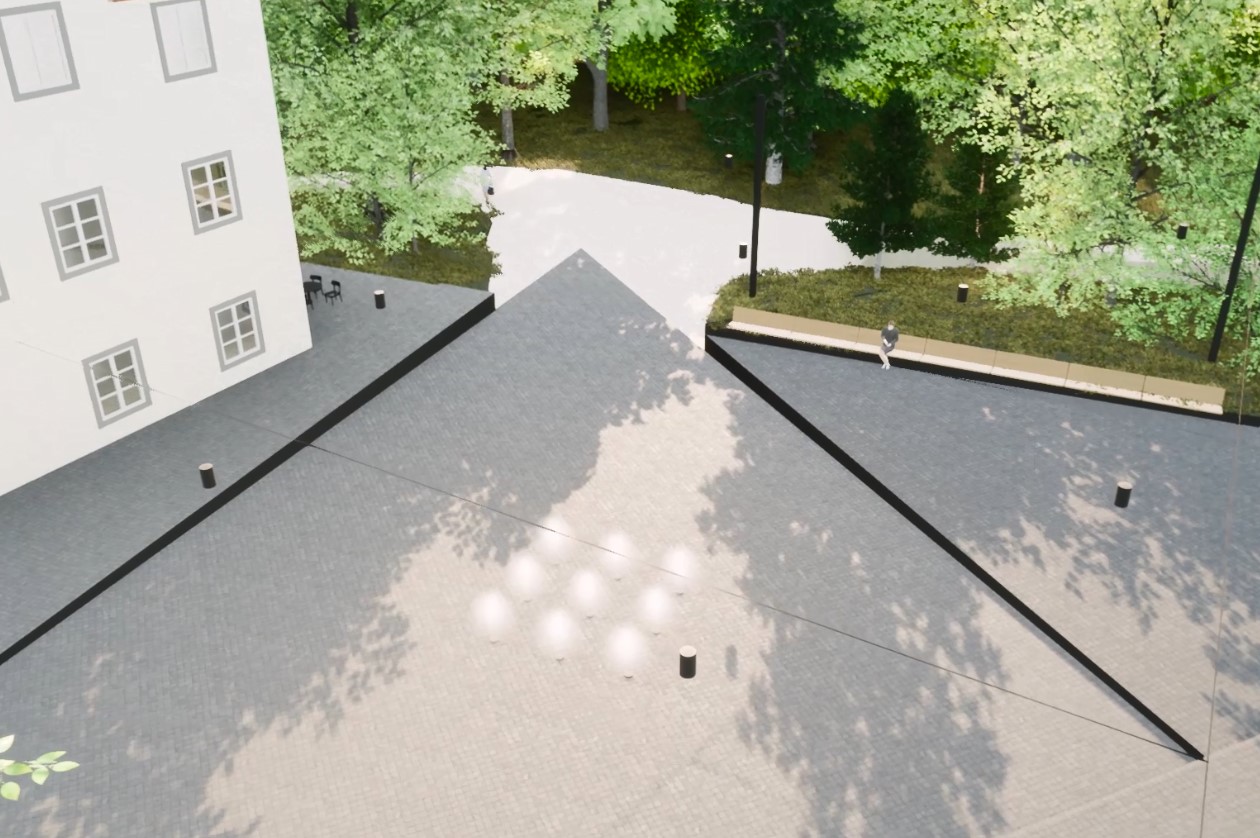Uređeni prostor će pješački povezati Habdelićevu ulicu i šetalište Vatroslava Jagića. U fokusu prostora, predviđena je suha fontana s podnim mlaznicama sa sustavom isključivanja kojom se pruža mogućnost drugog režima korištenja centralne točke prostora. Hodne plohe biti će izvedene u trajnom i kvalitetnom kamenom materijalu – sivi granit koji je tipičan za povijesnu jezgru Varaždina. Parter je ujednačen na gotovo čitavom zahvatu. Rubovi zone opločenja dobivaju ‘okvir’ od granitnih kocki postavljenih u 3 reda paralelno s pročeljima okolne izgradnje koja izvedba ruba je tipičan detalj u gradskoj jezgri Varaždina i omogućuje olakšano i urednije izvođenje rubova opločenja. Planira se sadnja dva stabla koja će, s trećim već postojećim stablom, nastaviti drvored koji već postoji u istočnom djelu Habdelićeve ulice. U južnom dijelu obuhvata smještena je velika klupa, koja je položena na jedan od 'rezova' u prostoru. Predviđa se postava novih rasvjetnih stupova, postavljenih obodno u odnosu na obuhvat zahvata. Između stupova razapeta je čelična užad koja nosi svjetiljke. na sjevernom rubu obuhvata predviđeni su stalci za bicikl.