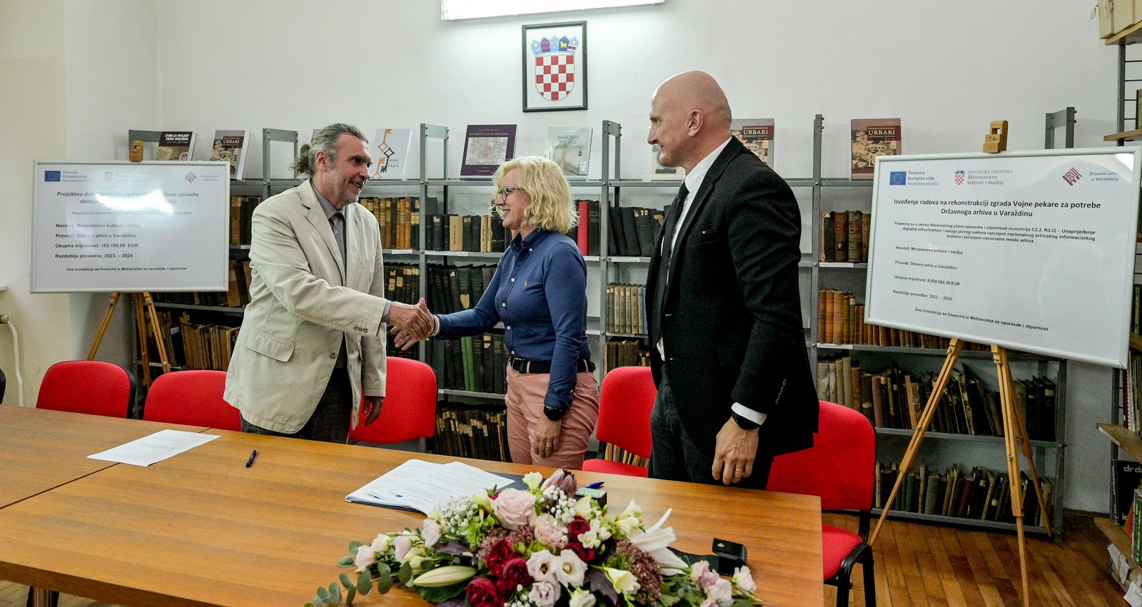 U Državnom arhivu u Varaždinu u petak su potpisani ugovori kojim se osiguravaju sredstva za izvođenje radova na rekonstrukciji zgrada Vojne pekare za potrebe Državnoga arhiva u Varaždinu.