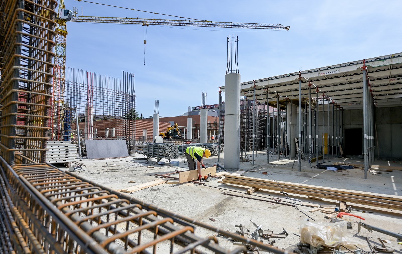 Izgradnja nove zgrade Centralnog operacijskog bloka u krugu Opće bolnice Varaždin odlično napreduje: sljedeći tjedan će početi pripremni radovi za izgradnju spojnih hodnika prema okolnim bolničkim zgradama, a do jeseni će biti završena cijela vanjska ovojnica ove građevine koja će se prostirati na ukupno 11.700 četvornih metara.