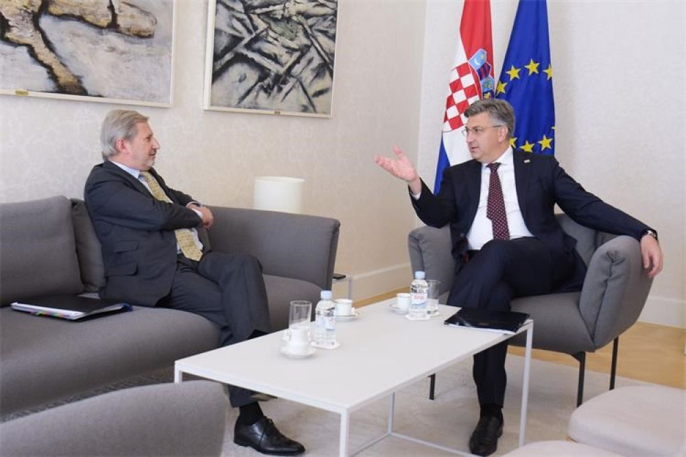 Predsjednik Vlade Andrej Plenković primio je danas u Banskim dvorima povjerenika Europske komisije za proračun i administraciju Johannesa Hahna.