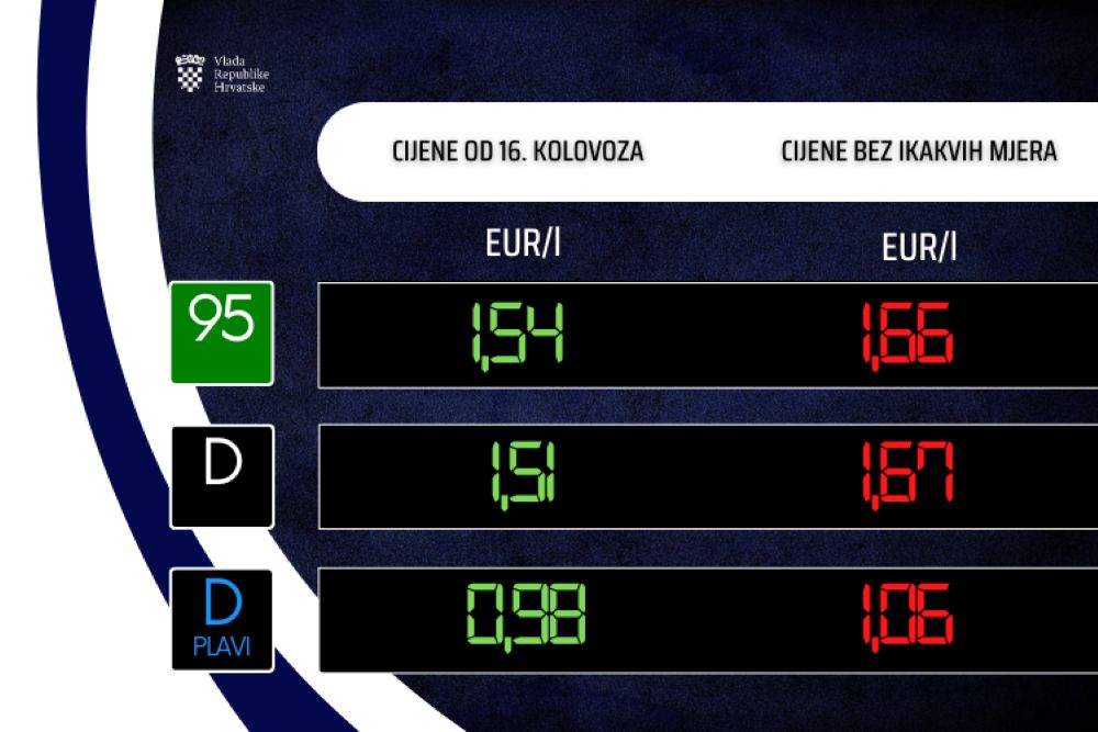 Uredba stupa na snagu 16. kolovoza 2023. godine, a ovakav režim vrijedit će za sljedeće 14 dnevno razdoblje. Nove cijene iznosit će: