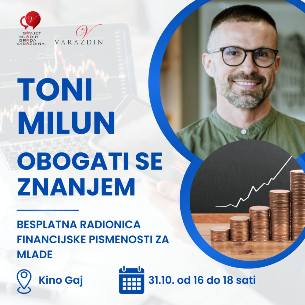 Radionicu će voditi poznati sveučilišni profesor matematike i ekonomije Toni Milun. Cilj ove interaktivne edukacije je: educirati polaznike o osnovama financijske pismenosti, osvijestiti važnost promišljenog upravljanja financijama te podučiti mlade tehnikama koje vode do stabilnije financijske situacije i boljeg životnog standarda.