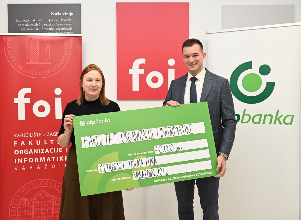 Član Uprave OTP banke Ivan Šimičević i dekanica Fakulteta organizacije i informatike prof. dr. sc. Marina Klačmer Čalopa potpisali su, u prostorima Fakulteta u Varaždinu, sporazum o suradnji koja uključuje ostvarivanje strateškog partnerstva Fakulteta i OTP banke te uređenje, odnosno obnovu prostorija Fakulteta. OTP banka će pomoći obnovu i opremanje prostora s modernom računalnom opremom, kao i drugim sadržajem namijenjenom učenju i poučavanju čime će Fakultet unaprijediti svoju poziciju obrazovne institucije koja značajno doprinosi razvoju IT kadra u Hrvatskoj.