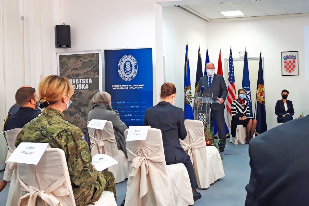 U Zagrebu je danas, 20. listopada 2020. godine održana konferencija u povodu početka projekta "Osnaživanje žena i podrška u vojnim snagama i mirovnim misijama Republike Hrvatske"). Projekt je financiran sredstvima Vlade Sjedinjenih Američkih Država i uz podršku veleposlanstva SAD-a u RH, a potporu projektu pružili su Ministarstvo obrane i Oružane snage RH.Projekt je je od 11 izabranih projekata u konkurenciji više od 300 prijavljenih projekata iz cijelog svijeta te će imati izravan utjecaj na Nacionalni akcijski plan za provedbu Rezolucije Vijeća sigurnosti UN-a 1235 (2000) o ženama, miru i sigurnosti srodnih rezolucija UN-a (2019. do 2023.) (NAP II). Izravni korisnici projekta bit će kadeti i ostali sudionici izravnih programa edukacije i osposobljavanja kako bi naučeno primijenili u profesionalnom radu Oružanih snaga.Na konferenciji su nazočili izaslanik ministra obrane RH načelnik Glavnog stožera Oružanih snaga RH admiral Robert Hranj, veleposlanik Sjedinjenih Američkih Država u Republici Hrvatskoj NJ.E. William Robert Kohorst, nositeljica projekta državna tajnica u Ministarstvu unutarnjih poslova Irena Petrijevčanin Vuksanović, pravobraniteljica za ravnopravnost spolova Višnja Ljubičić i predstavnica Centra za edukaciju, savjetovanje i istraživanje Anamarija Tkalčec.U sklopu konferencije prezentirane su video poruke ministra obrane RH Marija Banožića, načelnika Glavnog stožera OS RH admirala Roberta Hranja, veleposlanika SAD-a Kohorsta, posebne savjetnice načelnika Ureda Nacionalne garde SAD-a brigadne generalice Best, načelnice Uprave za planiranje Glavnog stožera OS RH brigadne generalice Gordane Garašić i pobočnice zapovjednika Ratnog zrakoplovstva Kraljevine Danske satnice Fabricius.