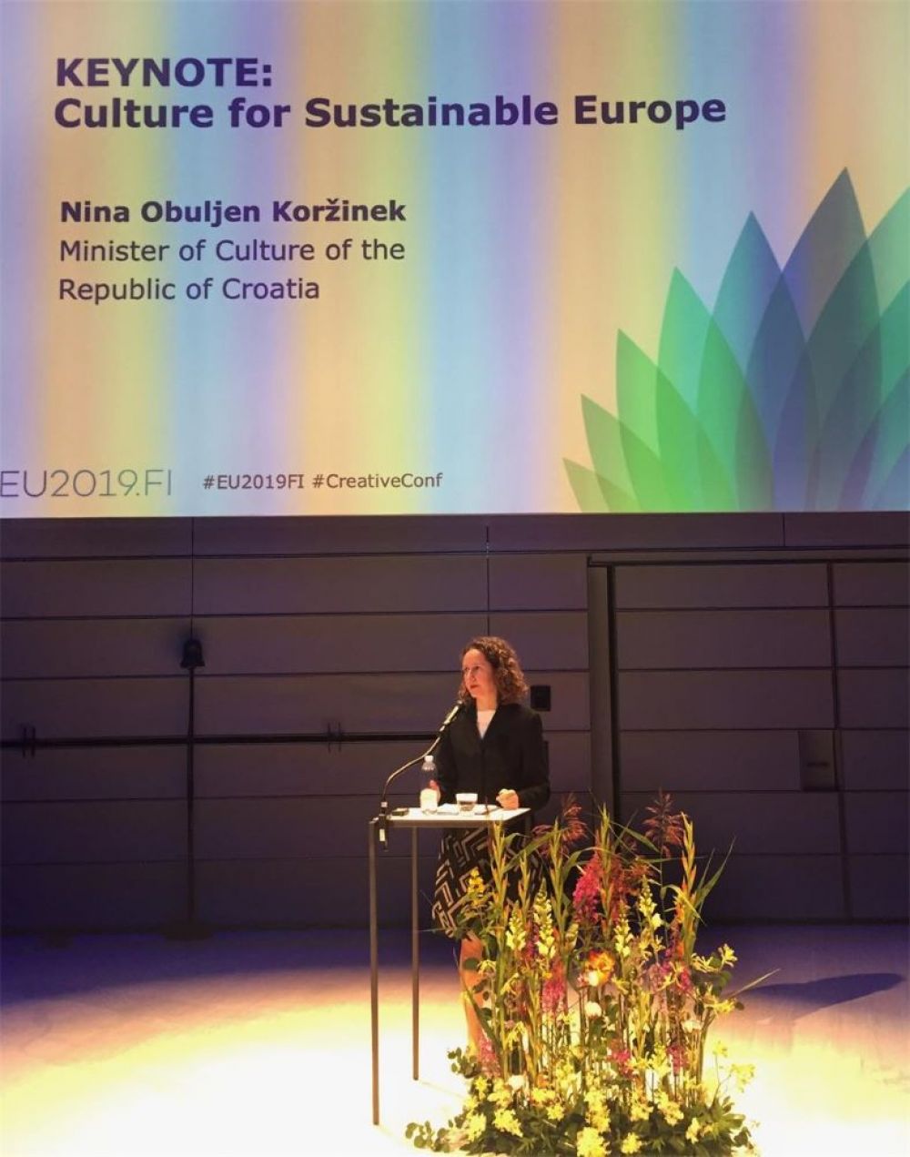 Ministrica kulture dr. sc. Nina Obuljen Koržinek boravila je u službenom posjetu Finskoj na konferenciji „Kreativne transformacije – kultura za demokratsku i održivu Europu“ (Creative Transformations – Culture for Democratic and Sustainable Europe) koja je održana Helsinkiju u utorak, 9. srpnja 2019. godine.