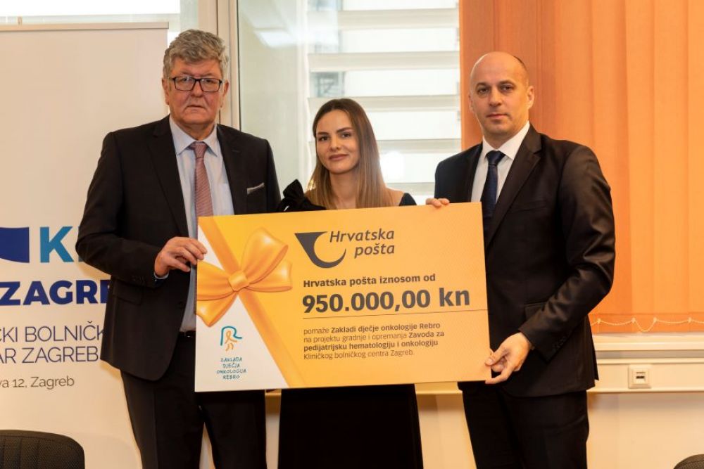 Predsjednik Uprave Hrvatske pošte Ivan Čulo predao je ravnatelju Kliničkog bolničkog centra Zagreb i članu Upravnog odbora Zaklade – dječja onkologija Rebro Anti Ćorušiću i gospođi Anamariji Zorović, upraviteljici Zaklade, simbolični ček u iznosu od 950000 kuna za gradnju i opremanje Zavoda za pedijatrijsku hematologiju i onkologiju Kliničkog bolničkog centra Zagreb.