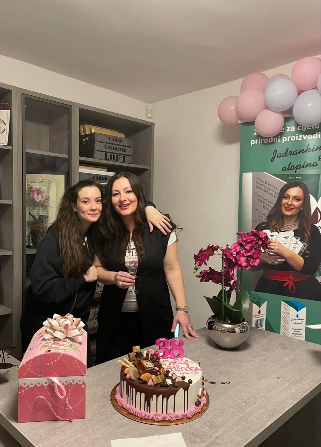 „Uz ovu glazbenu čaroliju s kojom sam proslavila svoj 38. rođendan, ponosna sam da smo ovu godinu započeli s novim uspjesima i širenjem naše tvrtke. Protekla je godina za JadroMel doo bila jedna od uspješnijih, a uz sadašnjih 16 dodataka prehrani i kozmetičkih proizvoda s kojima smo prisutni na hrvatskom tržištu, izašli smo i na regionalno i EU tržište. Trenutno svim našim klijentima mogu najaviti da intenzivno radimo na novoj formuli D vitamina s kojom ćemo uskoro izaći na tržište, a tijekom 2021. od nas mogu očekivati nove, prirodne proizvode, koji svi nastaju ovdje u Hrvatskoj, u mojim rodnim Križevcima“, prokomentirala je Jadranka Vrhovec na svečanoj proslavi. Uz rođendanske čestitke, tridesetosmogodišnjoj poduzetnici uzvanici su ujedno čestitali i na očekivanju prinove, a od buduće mame, tijekom rođendanskog slavlja, nije se odvajala njena kćer Melani koja će početkom lipnja dobiti sestru.