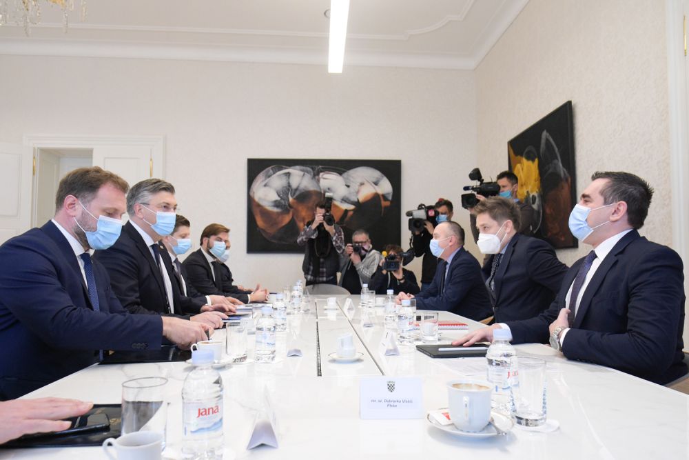 Predsjednik Vlade Andrej Plenković održao je danas radni sastanak u Banskim dvorima s Pavelom Maroušekom, članom Uprave Đuro Đaković Grupe, Danijelom Marićem, predsjednikom Uprave Đuro Đaković Specijalna vozila te Goranom Matanićem, članom Uprave Đuro Đaković Specijalna vozila.