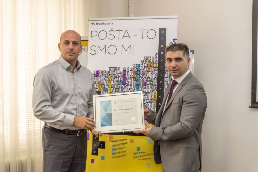 Dodjela Certifikata održana je 17. listopada u zgradi Hrvatske pošte u Jurišićevoj ulici u Zagrebu, a uime Hrvatske pošte Certifikat Poslodavac Partner primio je Ivan Čulo, predsjednik Uprave Hrvatske pošte, od Aleksandra Zemunića, člana Uprave konzultantske kuće SELECTIO. Prilikom uručenja Certifikata Ivan Čulo je istaknuo kako je Hrvatska pošta danas moderna tvrtka s jasnom vizijom i društvenom odgovornosti. Zahvaljujući Strategiji razvoja Pošta2022., kao i vrijednom i odgovornom radu svih radnika Pošta bilježi dobre poslovne rezultate u svim područjima, pa tako i upravljanju ljudskim resursima. „Zbog ovog certifikata možemo biti ponosni jer smo ujedno najveći poslodavac u Hrvatskoj i pouzdan poslovni partner. Primjenjujemo ponajbolje svjetske prakse i iskustva ne samo u temeljnom poslovanju nego i u odnosu prema radnicima. Zato ćemo i dalje nastaviti promovirati izvrsnost u upravljanju ljudskim resursima jer su ljudi ključ uspjeha svake kompanije“, rekao je Čulo.