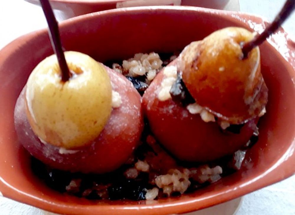 Kruške kuhane u crvenom vinu i punjene ječmenom kašom (Fotografija obiteljski album Sovićevih)