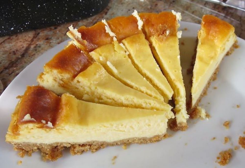 Za to vrijeme sve sastojke za sirni nadjev usitniti štapnim mikserom (da ne bude grudica). Smjesa je tekuća i glatka. Ulijte ju na pečenu podlogu od keksa i zatim vratite u pećnicu da se na istoj temperaturi peče oko 50 min. Izvadite iz pećnice da se ohladi na sobnu temperaturu i zatim stavite u hladnjak. Ohlađena je čvrsta, a ako je oko 30 min prije posluživanja izvadite na sobnu temperaturu, biti će kremastija.