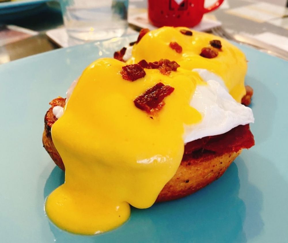 Jaja Benedikt, globalni specijalitet na lokalnom, regionalnom, slavonskom jeziku, s prženim kobasicama i čvarcima (Foto: Ivan Brezak Brkan / Oblizeki)