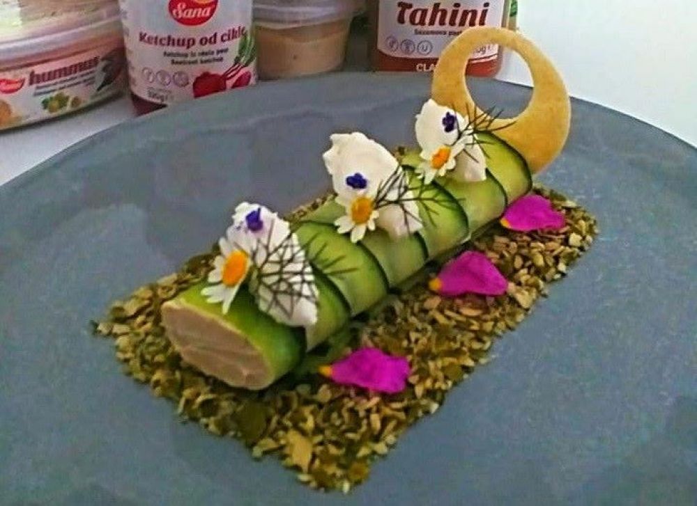 Cannelloni od mariniranog krastavca punjeni hummusom (recept Mate Đuzela, šefa kuhinje hotela Pax u Splitu)