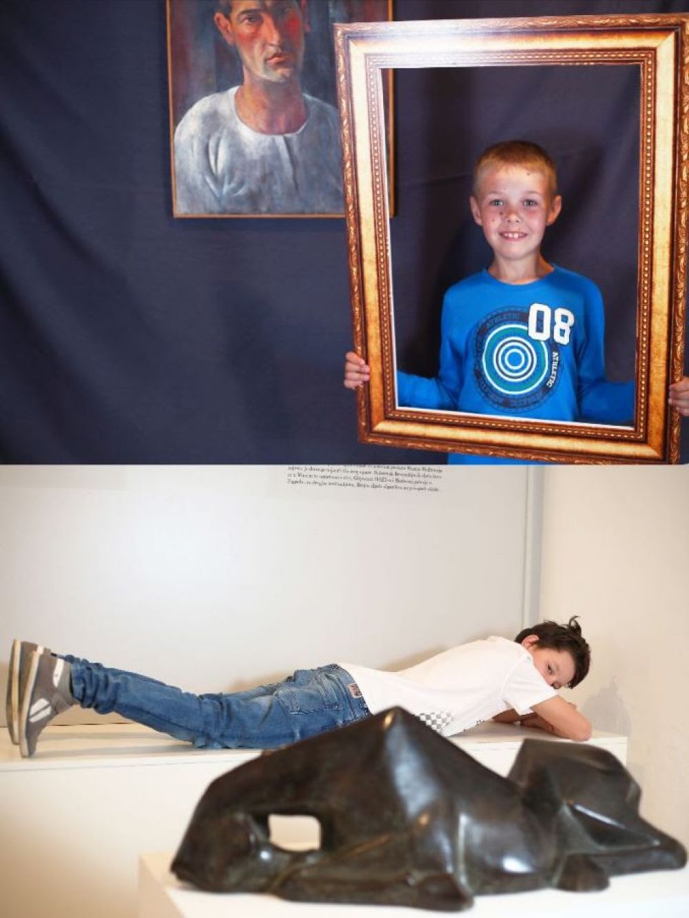 Djeci su ponuđena i objašnjena pojedina suvremena djela u Likovnoj galeriji koja su potom ona imitirala, što je fotografski zabilježeno. Nastale fotografije jako dobro poantiraju potaknutu radoznalost i izazvanu emociju te je ova virtualna izložba odličan pokazatelj pozitivne atmosfere postignute u radu s djecom. Takav projekt zahtijeva i specijalističku stručnu pomoć, koju smo također osigurali od samog razvoja ideje i osmišljavanja metoda rada do provedbe projekta. Projekt je inicirala muzejska savjetnica Erika Nađ-Jerković, a autorski je koncipiran i realiziran u suradnji s mr.sc. Jelenom Klinčević, kliničkom psihologinjom iz Psihologijskog centara u Čakovcu, vanjskom suradnicom Udruge Pogled. Fotografije je snimio Marko Vučenik.