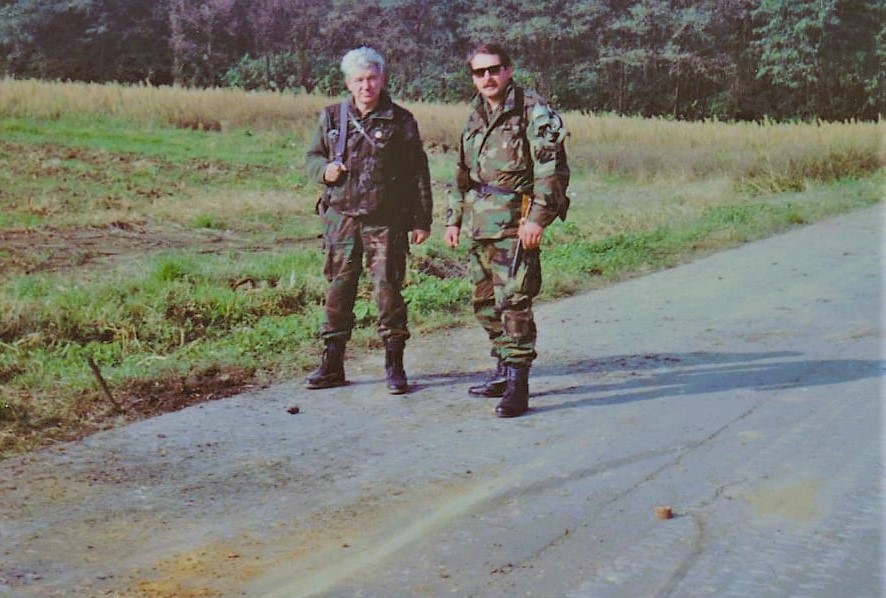 Zapovjednik satnije Marijan Kos (lijevo) i Josip Kapeš (desno) u centru sela Toranj