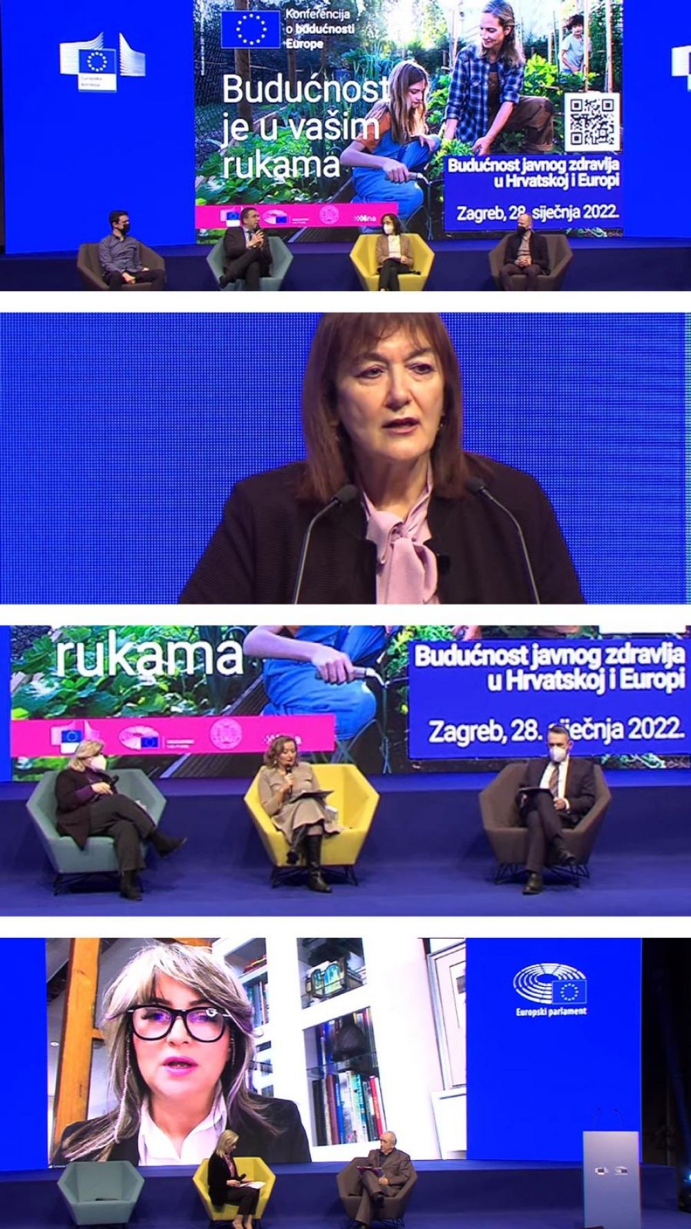 O budućnosti javnog zdravlja u Hrvatskoj i Europi raspravljalo se i iz komunikacijske i medicinske perspektive. Sudjelovali su dekan zagrebačkog Pravnog fakulteta Ivan Koprić, profesorica Jean Monnet profesorica europskog prava na Pravnom fakultetu u Zagrebu Iris Goldner Lang, profesor na Medicinskom fakultetu u Zagrebu Stjepan Orešković, ravnateljica Škole narodnog zdravlja "A. Štampar" Mirjana Kujundžić Tiljak, student prava Karlo Kožina, liječnica Katarina Babić, ravnateljica HINA-e Branka Gabriela Vojvodić (videovezom), te dopisnik HINA-e iz Bruxellesa Slavko Vukadin (videovezom). Također i predstavnici europskih građanskih panela Konferencije o budućnosti Europe: Vinko Sebešić, Ivan Begić, Mateja Lisak, Martina Zvonar i Fran Radačić.