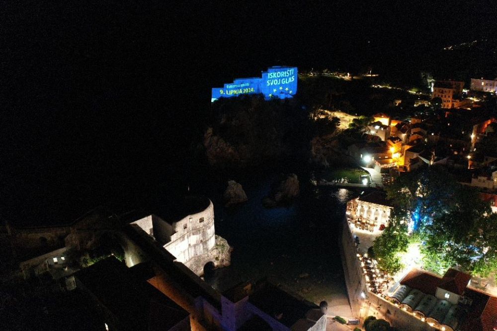 Znamenitosti i prepoznatljive lokacije u pet hrvatskih gradova sinoć su bile osvijetljene simbolima Europske unije i projekcijama s pozivom na glasanje na europskim izborima. Time je Ured Europskog parlamenta u Hrvatskoj još jednom želio podsjetiti birače da u nedjelju imaju priliku odlučiti tko će ih predstavljati u idućih pet godina pri oblikovanju novih europskih pravila koja će utjecati na njihovu svakodnevicu.