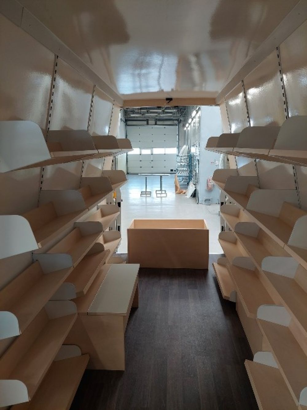 Suradnici na provedbi projekta "Čitanje na kotačima" posjetili su tvrtku AS Domžale gdje se nadograđuje kombi koji će postati prvi bibliobus Gradske knjižnice i čitaonice Novi Marof. Prisutni su razgledali vozilo te napredak njegove nadogradnje. Kombi je opremljen policama za knjige, klupicama za pohranu i ormarićima te pultom koji se može podići i poslužiti kao prolaz knjižničaru. Kombi će biti oslikan na prepoznatljiv način te opremljen vanjskim razglasom kojim će se označavati dolazak bibliobusa na stajalište.