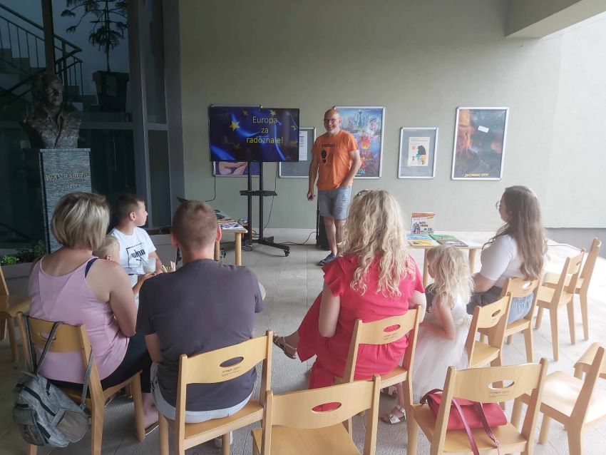 Ovih je dana mnogobrojnim aktivnostima obilježena 10. obljetnica pristupanja Republike Hrvatske Europskoj uniji. Jednu od aktivnosti u sklopu nacionalnog programa obilježavanja ove obljetnice upriličila je Gradska knjižnica i čitaonica Novi Marof organiziravši događanje "Knjiga do kućnog praga" u sklopu Dana otvorenih vrata EU projekata. Gost ovog događanja održanog u subotu prijepodne u Kulturnom centru „Ivan Rabuzin“ u Novom Marofu bio je poznati varaždinski putopisac Damir Vujnovac koji je kroz zanimljivo predavanje i radionicu za djecu predstavio najznačajnije europske gradove te njihove specifičnosti. Kako je tema dana članstvo u Europskoj uniji, g. Vujnovac odgovarao je prisutnima na brojna pitanja o članstvu Hrvatske u EU. Osim toga, zaposlenici knjižnice predstavili su svoj novi bibliobus koji s vožnjom kreće 3. srpnja te upisivali nove članove u pokretnu knjižnicu. Zainteresiranim stanovnicima pružane su sve informacije o aktivnostima i vožnji pokretne knjižnice te njenim stajalištima i vremenu vožnje. Pokretna knjižnica nabavljena je u sklopu projekta "Čitanje na kotačima" koji sufinancira Europska unija iz Europskog socijalnog fonda.