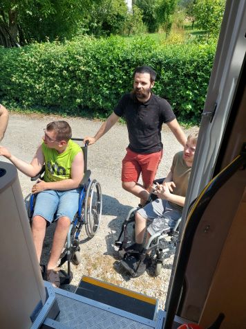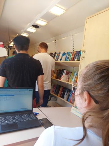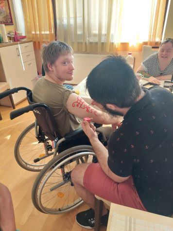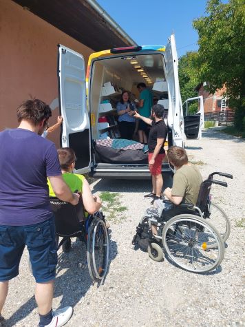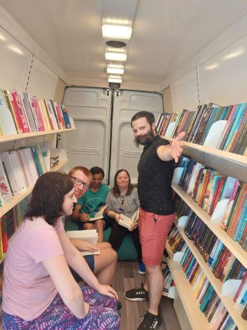 U utorak, 11. srpnja održana je promocija novomarofskog bibliobusa u udruzi „Sunce“ Novi Marof, koja okuplja djecu i osobe s poteškoćama u razvoju te osobe s invaliditetom. Korisnici, koji su nedavno sudjelovali u radionicama „Vesele stranice“, razgledali su bibliobus te knjige koje se nude, a knjižničarka Katja odgovarala je na pitanja zainteresiranih u vezi knjiga koje su zajedno obrađivali na radionicama. Događaju se također pridružio jedan od voditelja radionica, kazališni redatelj Lovro Krsnik te amaterski glumac Emir Ekinović, koji su s korisnicima udruge ostali i nakon razgledavanja bibliobusa. Kroz zajedničko druženje, održano je i posebno izdanje „oslikavanja tijela“ čime su svi korisnici dobili personaliziranu tetovažu da ih podsjeća na provedeno vrijeme tijekom provedbe projekta „Čitanje na kotačima“.