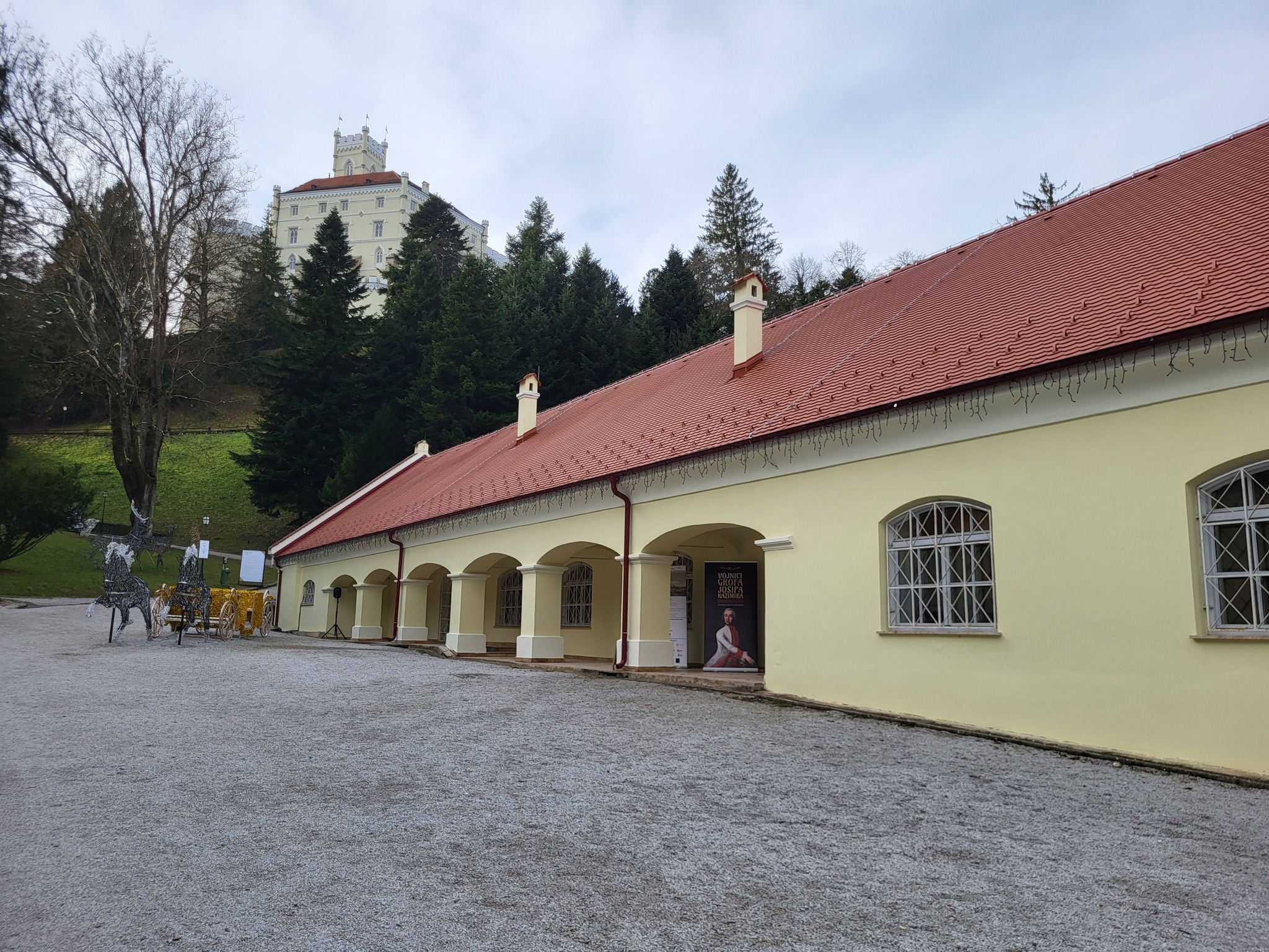 Dovršetkom energetske obnove pomoćna zgrada dobila je novu funkcionalnost, veći stupanj očuvanosti i važnu ulogu u budućem prezentacijskom i edukativnom radu Dvora Trakošćan. Nakon press konferencije predstavnici medija i sudionici u obnovi razgledali su reprezentativnu izložbu u tom prostoru , a kojom je najavljen završetak obnove: Vojnici grofa Josipa Kazimira Draškovića, izložba je to koja otkriva fascinantnu priču o vojnoj, umjetničkoj i obiteljskoj ostavštini jedne od najpoznatijih hrvatskih plemićkih loza. Izložba po prvi puta cjelovito predstavlja 49 portreta časnika njegove pukovnije, 11 oslikanih tapeta s prikazima vojnih postrojbi te Malo rodoslovlje, a može se razgledati sve do kraja ožujka 2026..