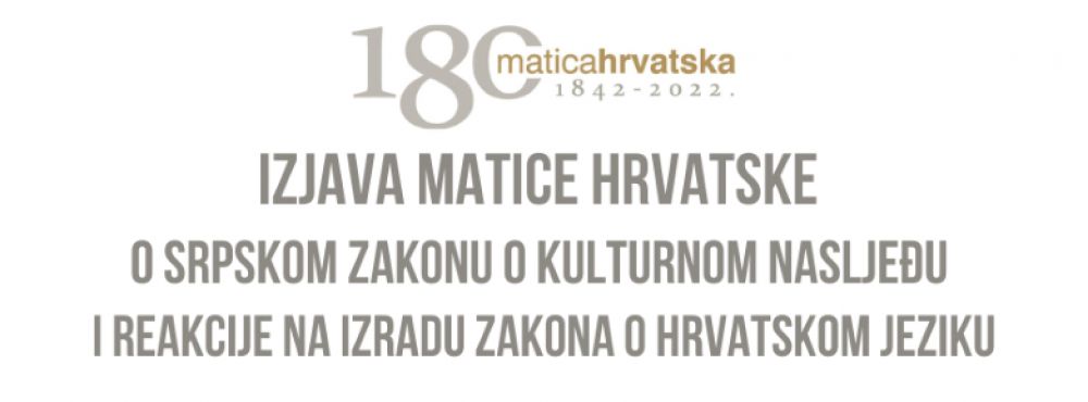 Predsjedništvo Matice hrvatske na svojoj je sjednici 18. siječnja 2022. zgroženo donošenjem srpskog Zakona o kulturnom nasljeđu usvojilo je sljedeću "Izjavu Matice hrvatske o srpskom Zakonu o kulturnom nasljeđu te reakcije na izradu Zakona o hrvatskom jeziku"