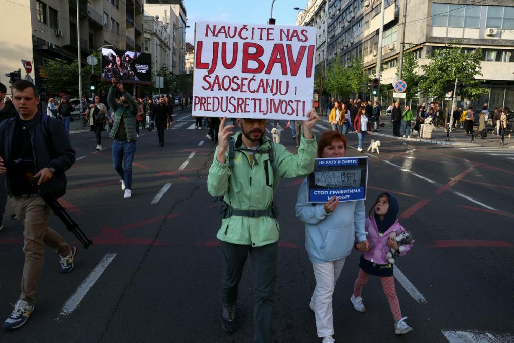 U Beogradu se, u svjetlu nedavnih pucnjava u Srbiji, prosvjedovalo protiv nasilja. Školarci su se okupili na skupu "Stop nasilju", a opozicija na protestu "Srbija protiv nasilja", javlja RTVSLO. U Srbiji je završena trodnevna žalost nakon dvije pucnjave u kojima je ubijeno 17 ljudi, no zemlja je i dalje duboko potresena i obavijena tugom. Deseci tisuća sudionika prosvjeda "Srbija protiv nasilja" u ponedjeljak su, reagirajući na dva masovna ubojstva prošlog tjedna, poručili vlastima u Beogradu da će "cijela Srbija stati" ako do 12. svibnja ne budu ispunjeni njihovi zahtjevi kojima traže zaustavljanje nasilja u javnom prostoru.