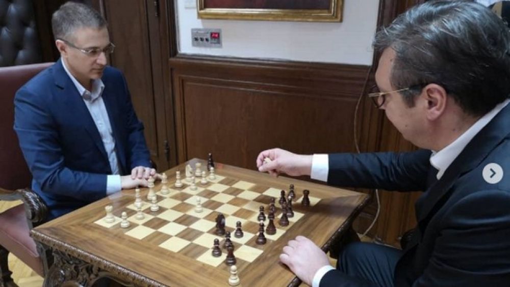 ● 14:37 - Na Instagramu je pak objavljeno da Vučić i njegov ministar policije Stefanović, dok je Predsjedništvo blokirano - unutra igraju šah.