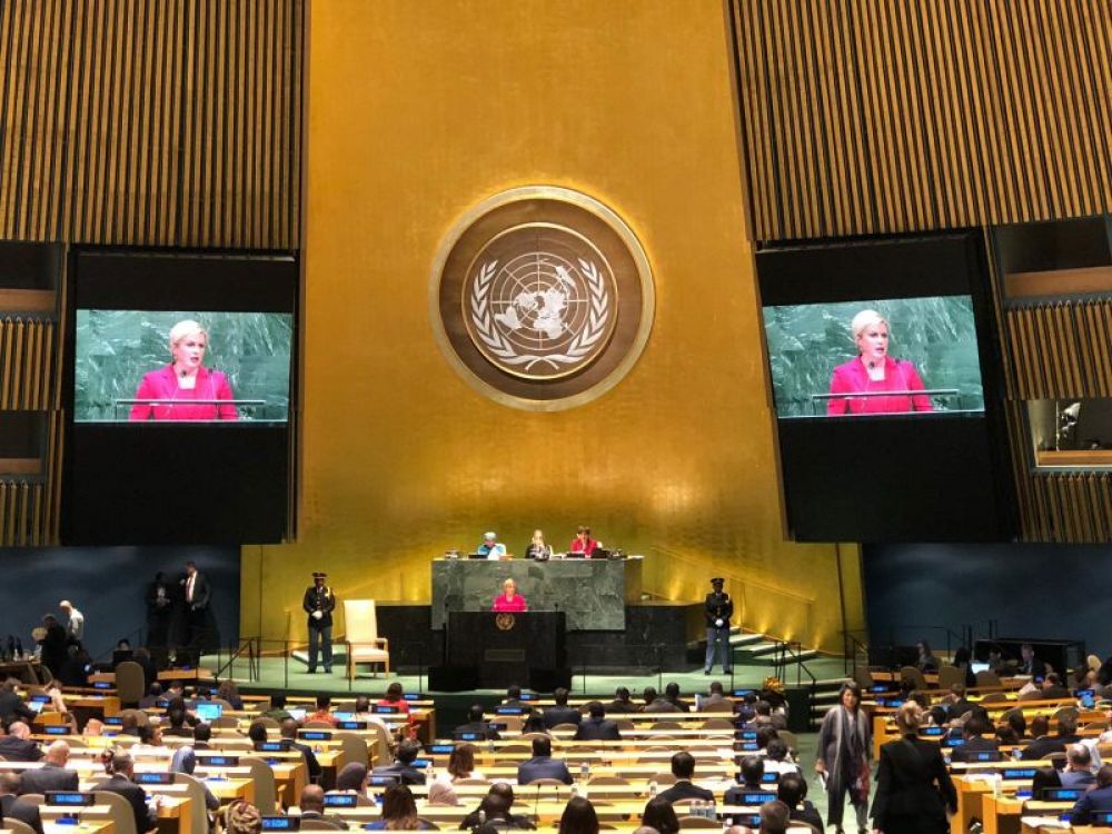 Govor pred Općom skupštinom UN-a Predsjednica Republike održala je danas 24. rujna, nakon čega je sudjelovala i na Političkom forumu o održivom razvoju na visokoj razini. održala je i bilateralni sastanak s jordanskim kraljem, a na kraju nazočila je tradicionalnom prijemu u organizaciji američkog predsjednika Trumpa te se sastala s predstavnicima hrvatske zajednice u New Yorku.