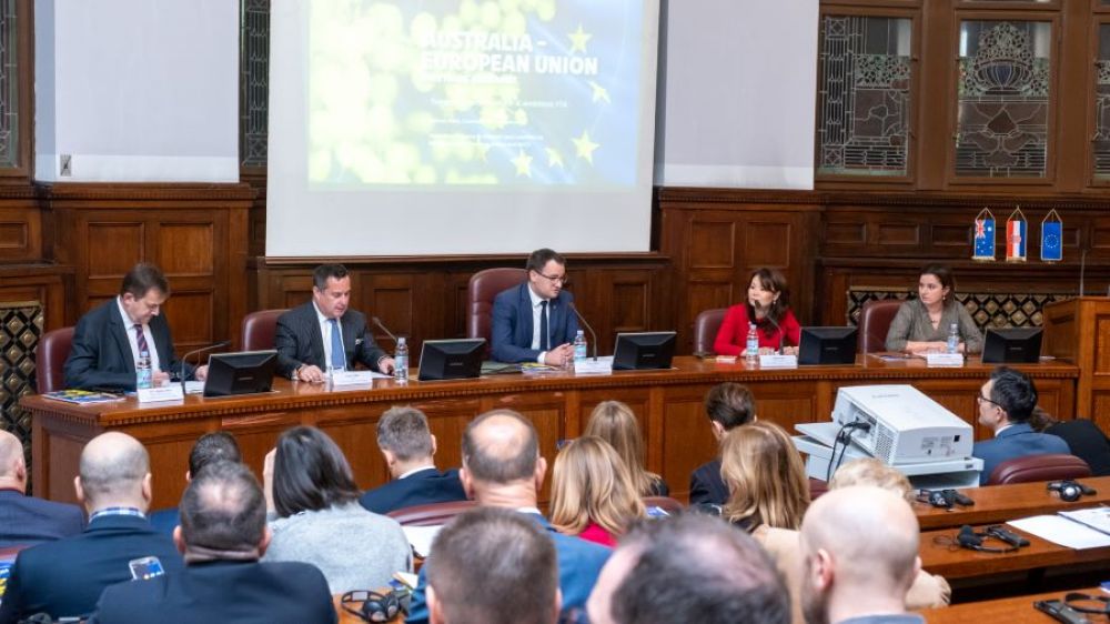 „Robna razmjena EU i Australije vrti se oko iznosa od 55 milijardi dolara godišnje. EU je drugi najveći trgovinski partner Australiji i drugo najveće izvozno tržište usluga. Unija je prošle godine bila i najveći izvor stranih ulaganja u Australiju. U kolaču od spomenutih 55 milijardi Hrvatska ima udio od tek 23,8 milijuna dolara. To je brojka kojom nikako ne možemo biti zadovoljni iako većina otpada na naš izvoz u Australiju (21,5 milijuna dolara). Zato Sporazum o slobodnoj trgovini između EU i Australije vidimo kao dodatni poticaj i našim bilateralnim odnosima“, istaknuo je potpredsjednik Hrvatske gospodarske komore za industriju i energetiku Tomislav Radoš na poslovnoj tribini Australija-EU: Sporazum o slobodnoj trgovini i njegov značaj za EU i Hrvatsku.