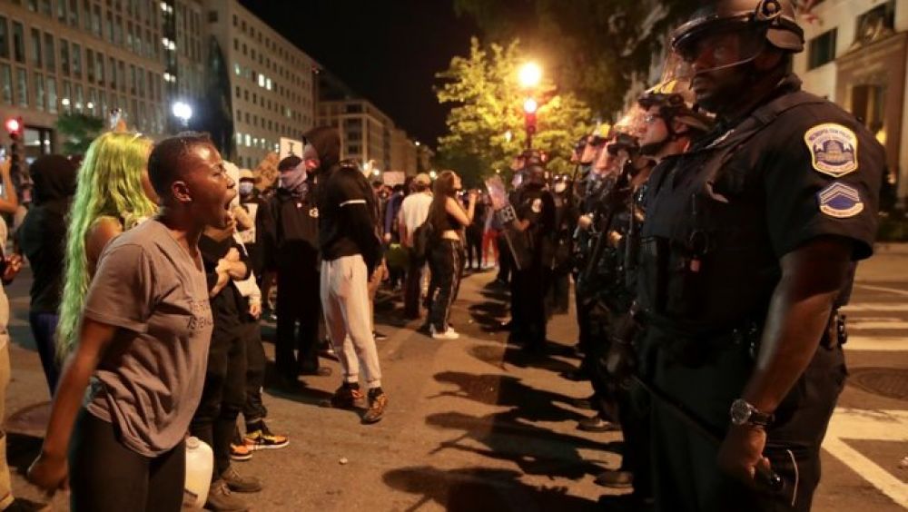 U Washingtonu su prosvjednici locirani u Park Lafayetteu ispred Bijele kuće, no marširaju i drugim dijelovima grada uzvikujući: "Bez pravde nema mira". Povremeno provociraju okršaje s policijom koja je snažno prisutna u glavnom gradu SAD-a.