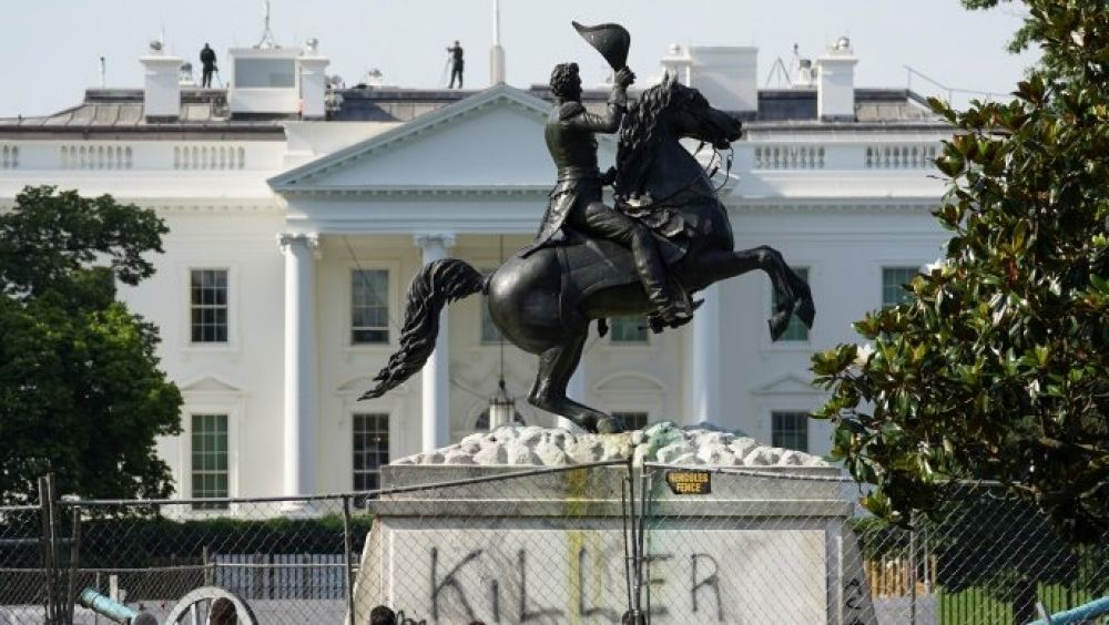 U ponedjeljak navečer prosvjednici su pokušali srušiti spomenik Andrewu Jacksonu, sedmom predsjedniku, u parku Lafayette, blizu Bijele kuće.