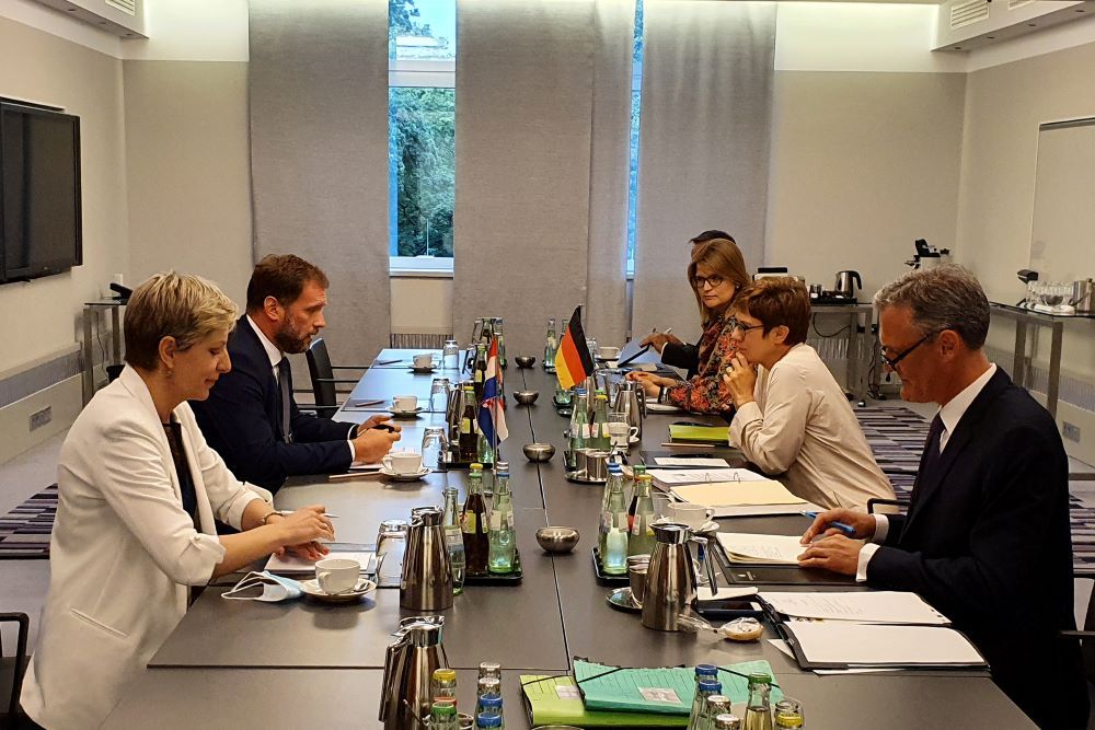 Ministar obrane Mario Banožić sastao se u srijedu 26. kolovoza 2020. na marginama sastanka ministara obrane Europske unije u Berlinu, s ministricom obrane Savezne Republike Njemačke Annegret Kramp-Karrenbauer. Ovo je bio prvi bilateralni susret ministra Banožića s njemačkom kolegicom. Na sastanku su potvrđeni izvrsni odnosi Hrvatske i Njemačke u području obrane kao i visok stupanj međusobnog razumijevanja po aktualnim pitanjima sigurnosne tematike. Ministar Banožić je izjavio kako je prioritet MORH-a nastavak kontinuiteta jačanja suradnje s Njemačkom u svim područjima.