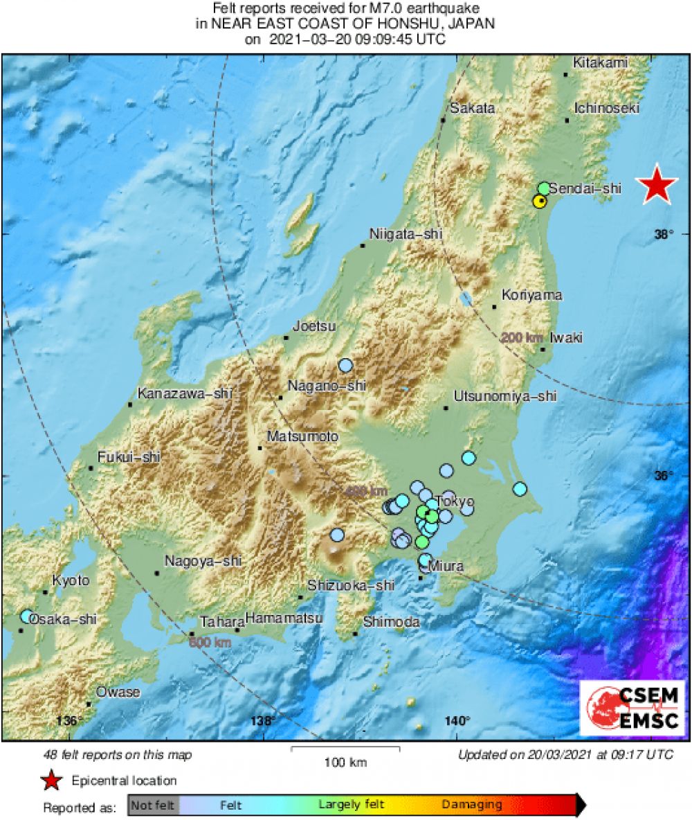 Epicentar potresa, koji je potresao cijelo područje sjeveroistočnog Japana, bio je u morskom dnu uz obalu Miyagija, priopćila je Japanska meteorološka agencija.Riječ je o istom području koje je 2011. pogodio katastrofalni potres i tsunamiju u kojem je oštećena nuklearna elektrana u Fukušimi, objavio je HRT