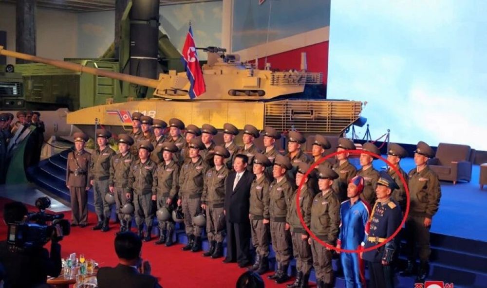 Sjevernokorejski padobranac u plavom kombinezonu sa zastavom vladajuće stranke privukao je veliku pozornost na društvenim mrežama nakon što je na snimci državnih medija prikazano kako se fotografira s vođom Kim Jong Unom na vojnoj smotri u Pjongjangu.