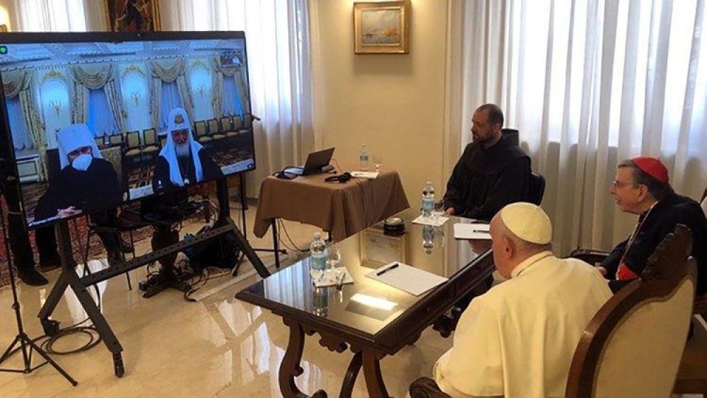 Odgovarajući na pitanja novinara, ravnatelj Tiskovnoga ureda Svete Stolice Matteo Bruni izvijestio je da je u središtu razgovora bio rat u Ukrajini te uloga kršćana i njihovih pastira u tomu da učine sve kako bi prevladao mir. Zahvaljujući patrijarhu čitave Rusije na susretu, potaknutom – kako stoji u priopćenju – željom da kao pastiri svojih naroda usmjere na put mira, Papa se s patrijarhom složio da Crkva ne smije rabiti jezik politike, nego Isusov jezik. Pastiri smo istoga svetog naroda koji vjeruje u Boga, u Presveto Trojstvo, u svetu Majku Božju; zbog toga se trebamo ujediniti u nastojanju da pomognemo miru, da pomognemo onima koji trpe, da tražimo putove mira, kako bismo zaustavili vatru. Obojica su – stoji u priopćenju – istaknuli iznimnu važnost pregovaračkoga procesa koji je u tijeku jer – kako je rekao Papa – tko plaća račun za rat jesu ljudi, ruski vojnici i narod koji je bombardiran i koji umire.