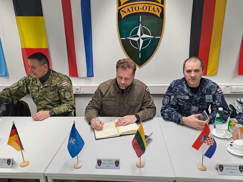 .Ministar obrane Mario Banožić s načelnikom Glavnog stožera Oružanih snaga Republike Hrvatske admiralom Robertom Hranjem, zapovjednikom Hrvatske kopnene vojske Oružanih snaga RH general pukovnikom Borisom Šerićem i s vojnim izaslanikom Sjedinjenih Američkih Država u Republici Hrvatskoj brigadirom Matthewom Dennyem, boravio je u ponedjeljak 13. ožujka 2023. godine u službenom posjetu 3. hrvatskom kontingentu upućenom u NATO aktivnost Ojačane prednje prisutnosti u Republici Litvi.