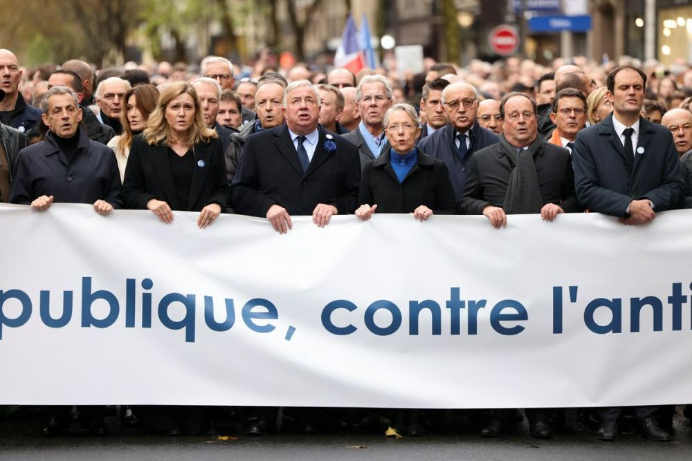 Prema francuskim vlastima, od napada Hamasa na Izrael 7. listopada broj antisemitskih incidenata utrostručio se u usporedbi s cijelom 2022. Na čelu marša, gdje su političari držali natpise "Za Republiku, protiv antisemitizam", bili su političari iz predvođeni Elisabeth Borne i bivšim predsjednicima Francoisom Hollandeom i Nicolasom Sarkozyjem.Policija procjenjuje da je u nedjeljnom maršu sudjelovalo 105.000 ljudi. Predsjednik Emmanuel Macron, koji je odlučio ne prisustvovati skupu, koji je izazvao kritike nekih političara, objavio je otvoreno pismo u kojem je podržao marš i osudio "nepodnošljivo oživljavanje neobuzdanog antisemitizma " .