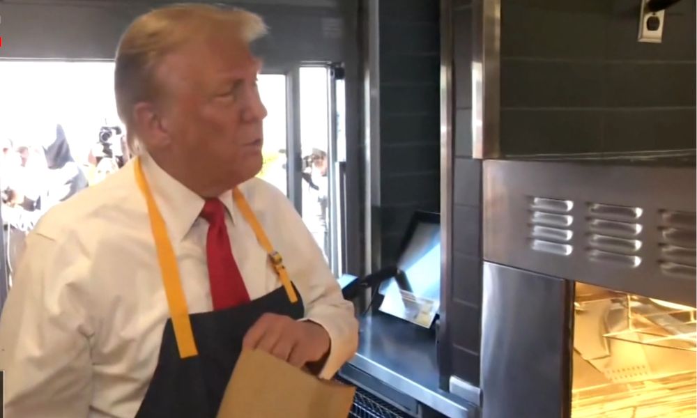 Odabirom radnog mjesta ismijao je Kamalu Harris koja kaže da je kao studentica radila u lancu brze hrane. Trump tvrdi da je to izmislila.