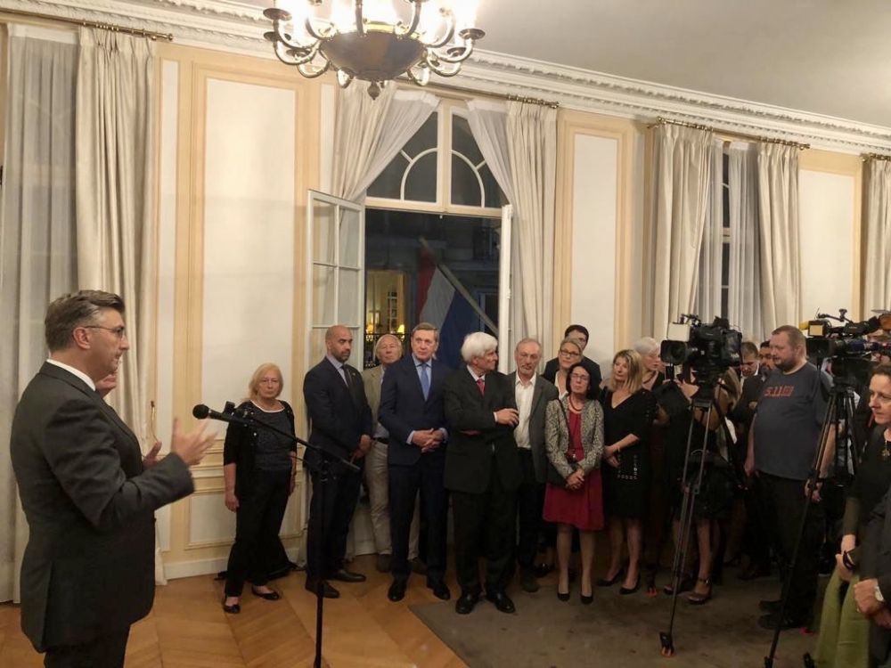 Tijekom svog radnog posjeta Francuskoj, predsjednik Vlade Andrej Plenković u Veleposlanstvu RH u Parizu sastao se s hrvatskim iseljenicima u Francuskoj.U prigodnom obraćanju, predsjednik Vlade Plenković istaknuo je da u sutrašnjim razgovorima s predsjednikom Emmanuelom Macronom želi dotaknuti tri grupe tema. Jednu grupu predstavljaju bilateralni odnosi Hrvatske i Francuske i jačanje strateškoga partnerstva koje između dviju zemalja postoji već osam godina. U drugoj su grupi ključne europske teme, Brexit, pitanja migracija i sigurnosti, višegodišnji financijski okvir Europske unije za razdoblje od 2021.- 2027.  te dva temeljna cilja koja europski proračun treba donijeti Hrvatskoj.