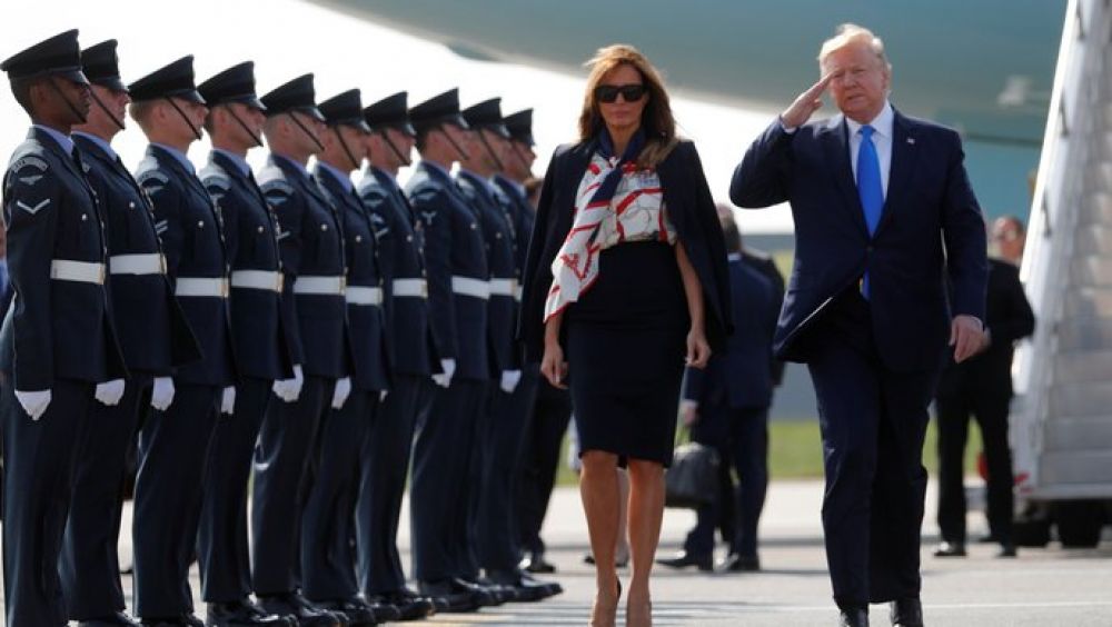 Trumpovima je po dolasku, u zračnoj luci priređen doček - dočekali su ih američki veleposlanik u Velikoj Britaniji Woody Johnson i britanski ministar vanjskih poslova Jeremy Hunt. Trumpov prvi dan u Londonu je popraćen prosvjedima.