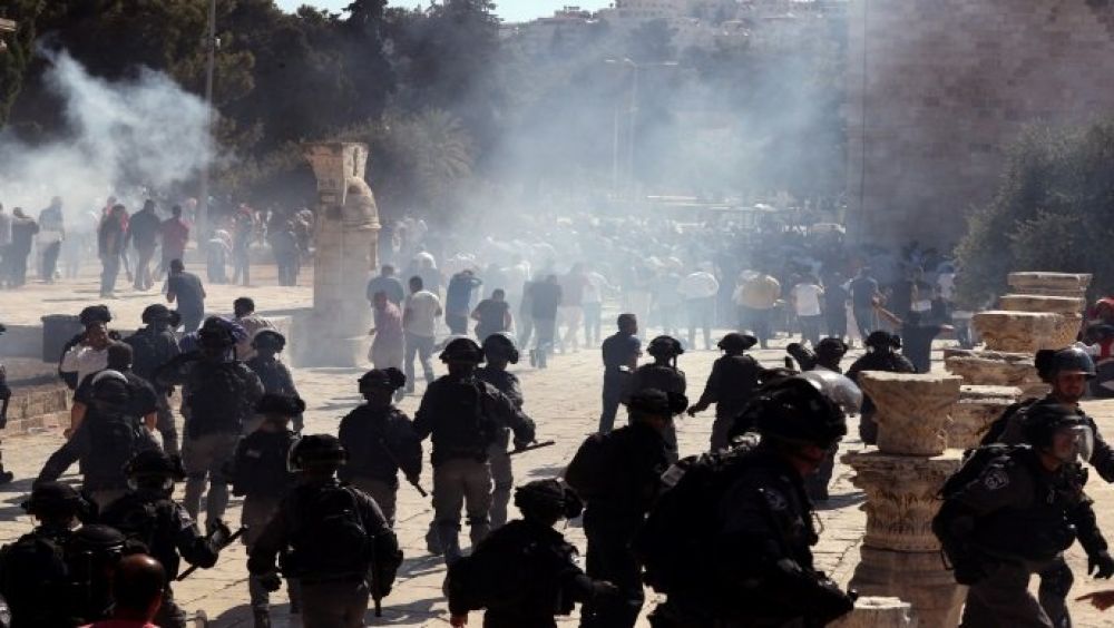 Sukobivši se s policijom ispred svetog mjesta, Palestinci su uzvikivali: "Otkupit ćemo te dušom i krvlju svojom, Aksa". Nastala je prepirka, a kad su policajci počeli ispaljivati zvučne granate mnoštvo je počelo bježati. Židovi mjesto smatraju svojim svetim mjestom i nazivaju ga Brdom hrama, te smatraju da se ondje nalazio srušeni Solomonov hram.