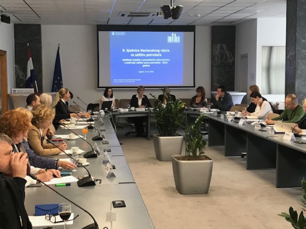 U četvrtak, 14. studenog 2019. godine, u Ministarstvu gospodarstva, poduzetništva i obrta održana je 9. sjednica Nacionalnog vijeća za zaštitu potrošača. Sastav nacionalnog vijeća je proširen sukladno Odluci Vlade Republike Hrvatske od 6. lipnja 2019. godine (Klasa: 022-03/19-04/205; Urbroj: 50301-25/05-19-2) te uključuje predstavnike slijedećih resora: Ministarstva gospodarstva, poduzetništva i obrta, Ministarstva zaštite okoliša i energetike, Ministarstva financija, Ministarstva mora, prometa i infrastrukture, Ministarstva poljoprivrede, Ministarstva pravosuđa, Ministarstva unutarnjih poslova, Ministarstvo turizma, Ministarstva zdravstva, Ministarstva znanosti i obrazovanja, Državnog inspektorata, Agencije za elektroničke medije, Hrvatske agencije za civilno zrakoplovstvo, Hrvatske agencije za nadzor financijskih usluga, Hrvatske energetske regulatorne agencije, Hrvatske regulatorne agencije za mrežne djelatnosti, Hrvatske narodne banke, Hrvatske gospodarske komore, Hrvatske obrtničke komore, Hrvatske udruge poslodavaca, Vijeća za vodne usluge, Visokog trgovačkog suda Republike Hrvatske, Pravnog Fakulteta u Zagrebu, Pravnog fakulteta u Osijeku, te udruge za zaštitu potrošača.