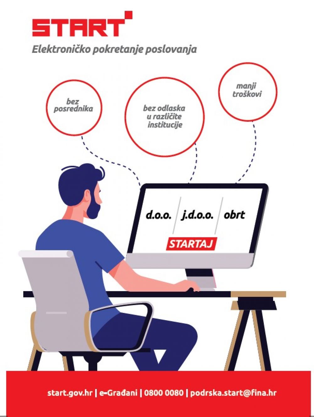 Pokretanje poslovanja za društva (d.o.o., j.d.o.o.) i obrte kroz sustav START omogućeno je na daljinu, bez posrednika i kroz samo jedan elektronički postupak. To je moderna e-usluga, utemeljena na načelu unosa minimalno potrebnih podataka, samo jednom. Svi se dostupni podaci povlače iz javnih registara i dostupnih baza podataka te se automatski razmjenjuju. Za korisnika nema odlaska u zasebne institucije niti dokumentacije u papirnom obliku.