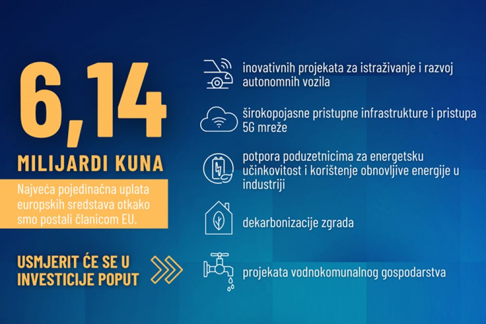 "A to je brz i visoki gospodarski rast i oporavak, sjajna turistička sezona, očuvana radna mjesta i sada je vrijeme da ova sredstva potaknu i rast i razvoj i konkurentnost hrvatskog gospodarstva", naglasio je.