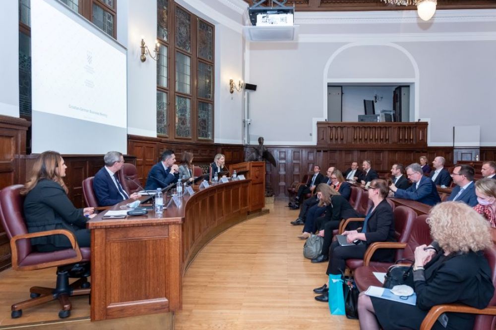 Predstavnici Hrvatske gospodarske komore sastali su se jučer s njemačkim gospodarskim izaslanstvom na čelu s Odborom njemačkog gospodarstva za istočnu Europu (Ost-Ausschluss) i Udruge za upravljanje lancem opskrbe, nabavu i logistiku (BME). Glavne teme razgovora bile su jačanje hrvatsko-njemačkih odnosa i utjecaj recentnih globalnih događanja na gospodarstvo.