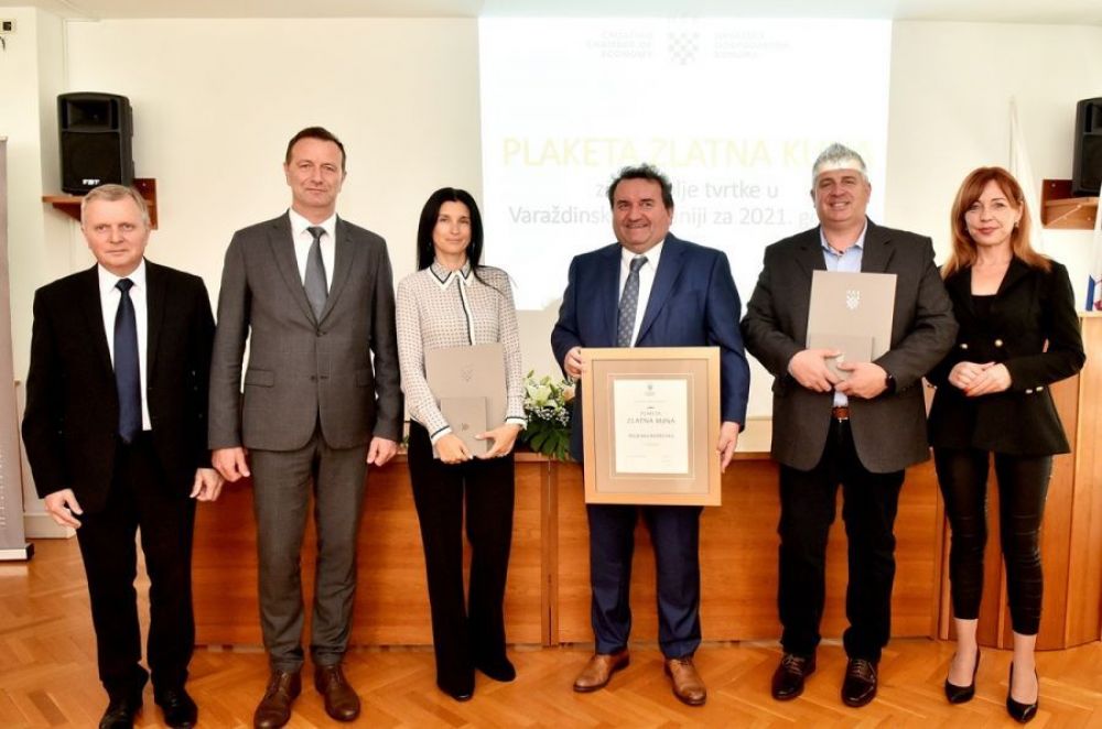 Najuspješnijim trgovačkim društvima Varaždinske županije dodijeljena su priznanja HGK-a "Zlatna kuna" za 2021. godinu. U Hrvatskoj gospodarskoj komori - Županijskoj komori Varaždin u srijedu su najuspješnijim trgovačkim društvima s područja Varaždinske županije uručena priznanja "Plaketa Zlatna kuna" za 2021. godinu. U kategoriji malo trgovačko društvo priznanje je dodijeljeno tvrtki RDTECH d.o.o. iz Varaždina. Plaketa Zlatna kuna za srednje trgovačko društvo dodijeljena je tvrtki Calzedonia Digital d.o.o. U kategoriji veliko trgovački društvo plaketa je uručena tvrtki WE-KR d.o.o. iz Donje Višnjice. Priznanje za životno djelo dodijeljeno je Miljenku Borščaku, direktoru tvrtke Bomark Ambalaža d.o.o. i generalnom direktoru Bomark Grupe.