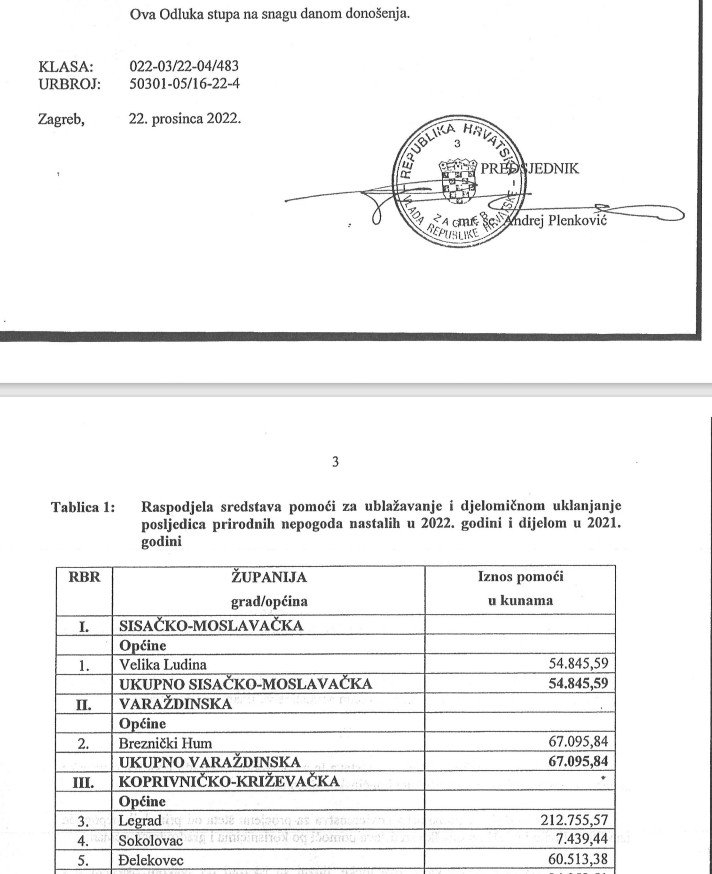 - Iznos naknade dodijeljen je recipročno površinama stradalim od suše, tako da on iznosi od nekoliko stotina do nekoliko tisuća kuna po domaćinstvu – kazao je načelnik općine Breznički Hum Zoran Hegedić. Dodijeljena sredstva namijenjena su ublažavanju i uklanjanju posljedica od prirodnih nepogoda nastalih u 2022. godini a dijelom i u 2021. na području Republike Hrvatske - navodi se u Zaključku Državnog povjerenstva za procjenu šteta od prirodnih nepogoda. Ukupno je za tu namjenu hrvatskim poljoprivrednicima isplaćeno 9,5 milijuna kuna, od čega je jedino općini Breznički Hum s područja Varaždinske županije odobrena isplata financijske pomoći za sušom pogođeno poljoprivredno zemljište.